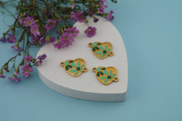 Serce w kwiatki zielone / łącznik / stal chirurgiczna / 10x13mm / złoty / 1szt