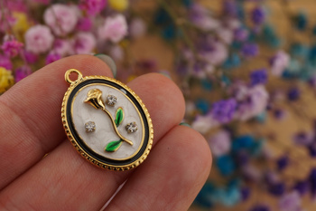 Róża z cyrkoniami / zawieszka ze stali chirurgicznej / 26x19mm / złoty / 1szt