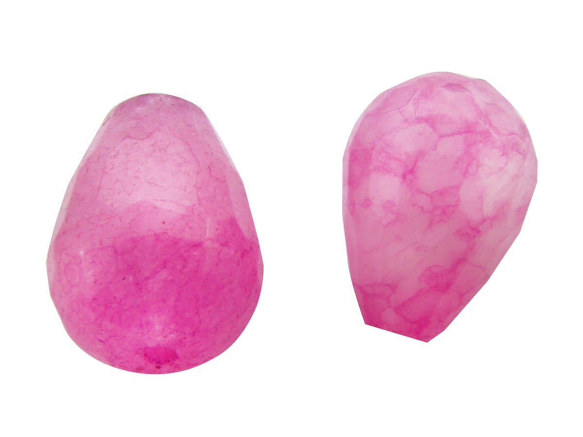 Agat 14x10mm, kropla fasetowana / kolor mleczny różowy / otwór 1.5mm / 2szt