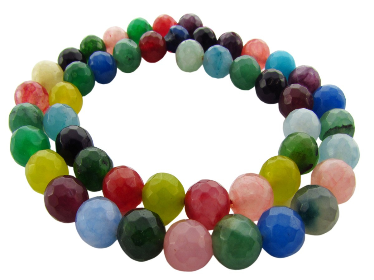 Agat barwiony, kula fasetowana 7-8mm / multikolor / otwór 1.6mm / 45szt / 1 sznur