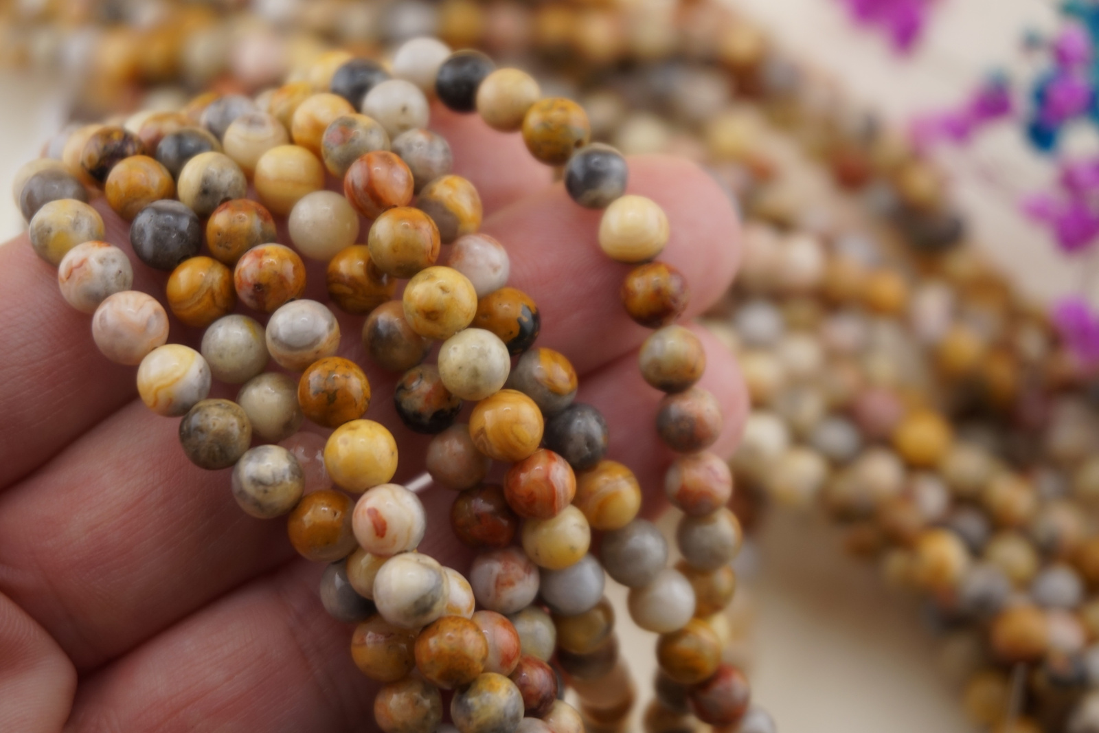 To świetny wybór do bransoletek, naszyjników i kolczyków handmade, zwłaszcza jeśli chcesz dodać projektom energii i koloru. Agat Crazy Żółty pięknie łączy się ze stalą chirurgiczną, hematytem, drewnem oraz kamieniami w ciepłych odcieniach.
