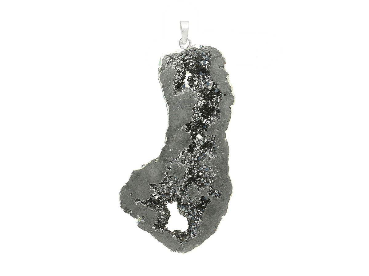 Agat druzy / zawieszka / w okuciu / plaster nieregularny / 78x41x9mm / szary / 1szt