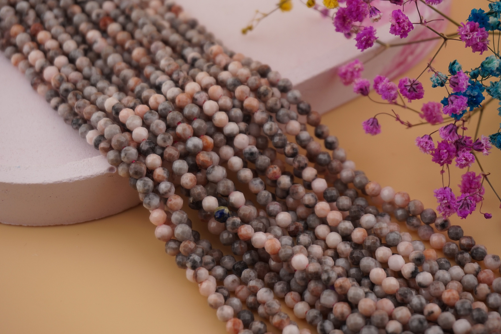 Agat Flower Zebra / kula fasetowana / 4mm / sznur / około 84szt