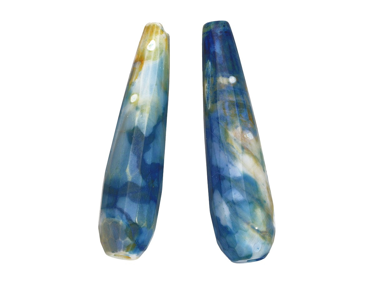 Agat / kropla fasetowana / 40x10x10mm / granatowy, multikolor / 2szt