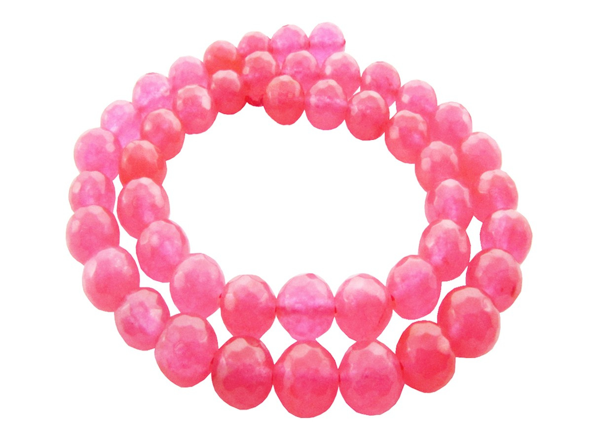 Agat, kula fasetowana 7-8mm / różowy, landrynkowy / otwór 1.6mm / 45szt / 1 sznur