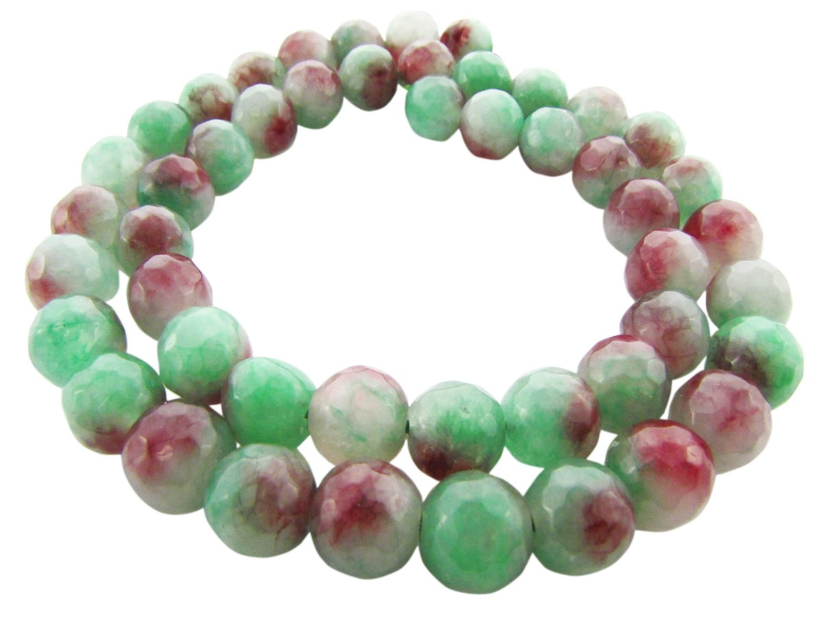 Agat, kula fasetowana 7-8mm / zielony, czerwony / otwór 1.6mm / 45szt / 1 sznur