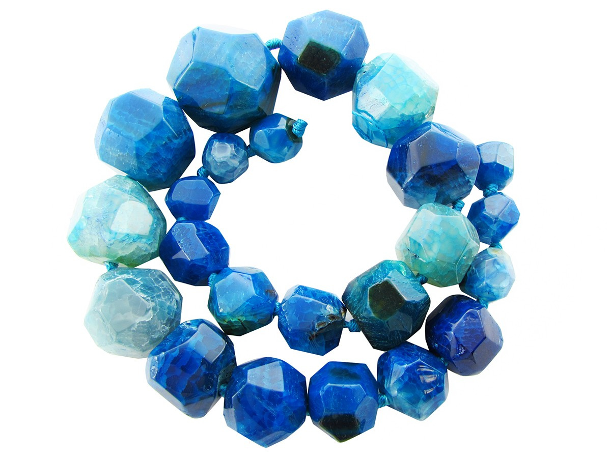 Agat / kule fasetowane nieregularne / 12-25mm x 13-26mm / niebieski / otwór 2mm / 1sznur stopniowany