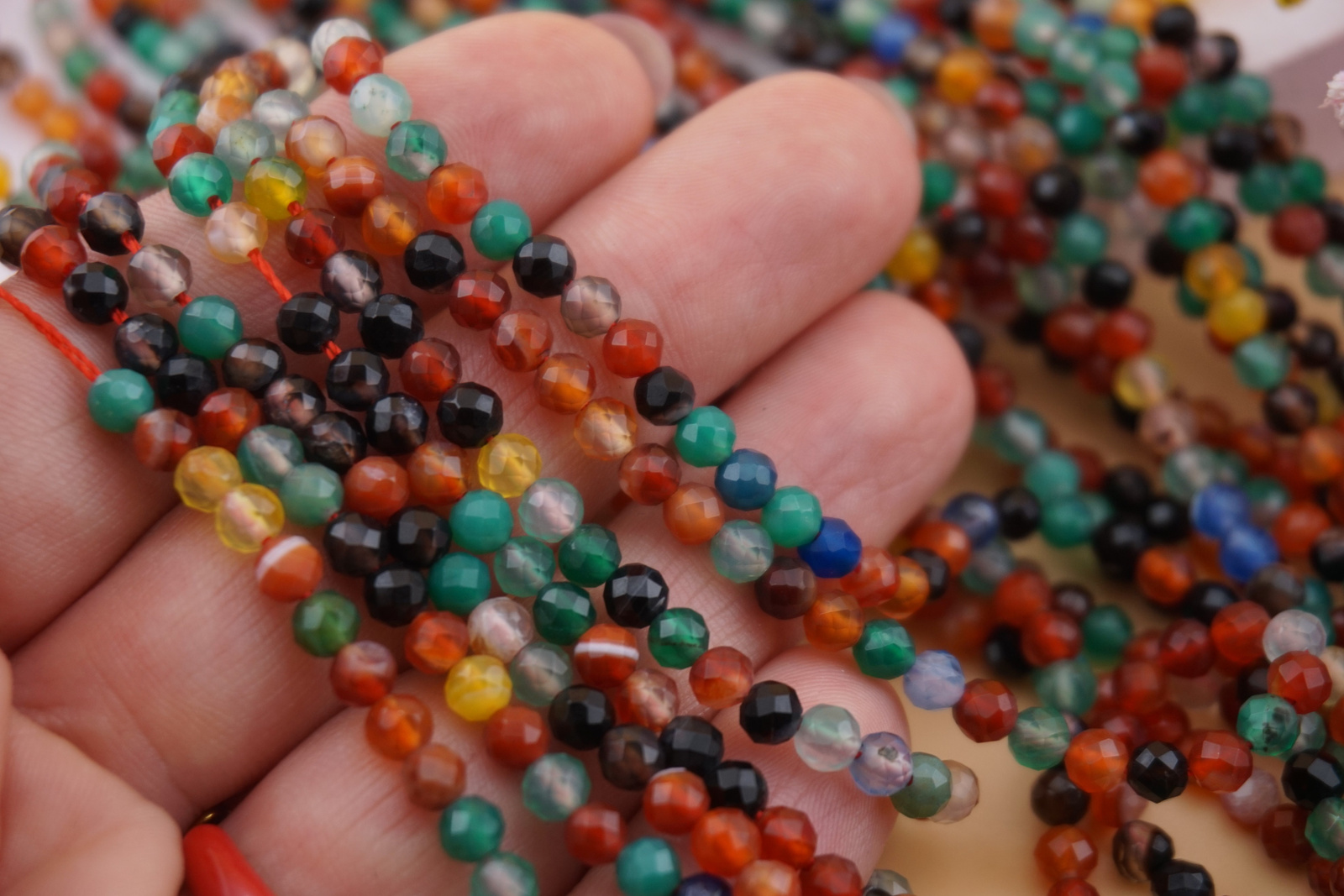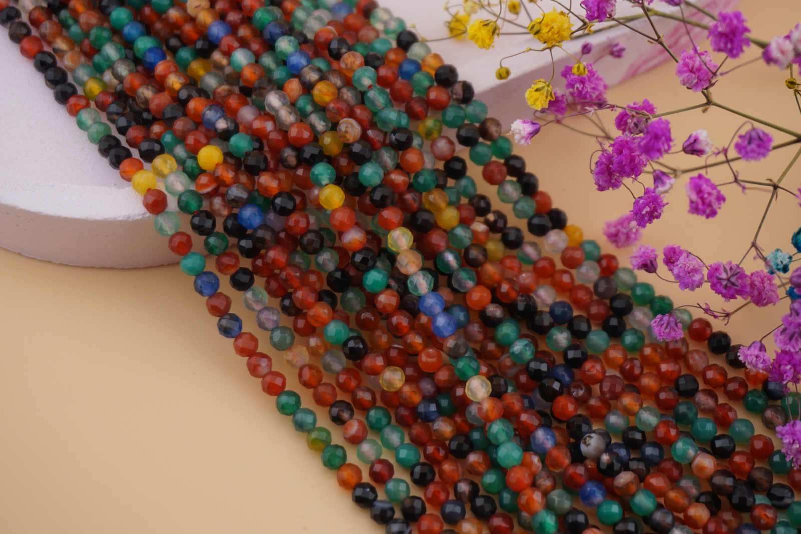 Agat multikolor / kula fasetowana / 4mm / sznur / około 84szt