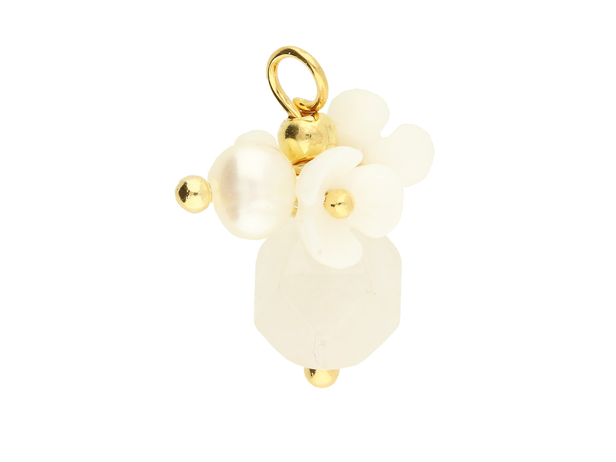 Agat z kwiatkami / zawieszka / 18x10mm / miedź, agat / biały / 1szt