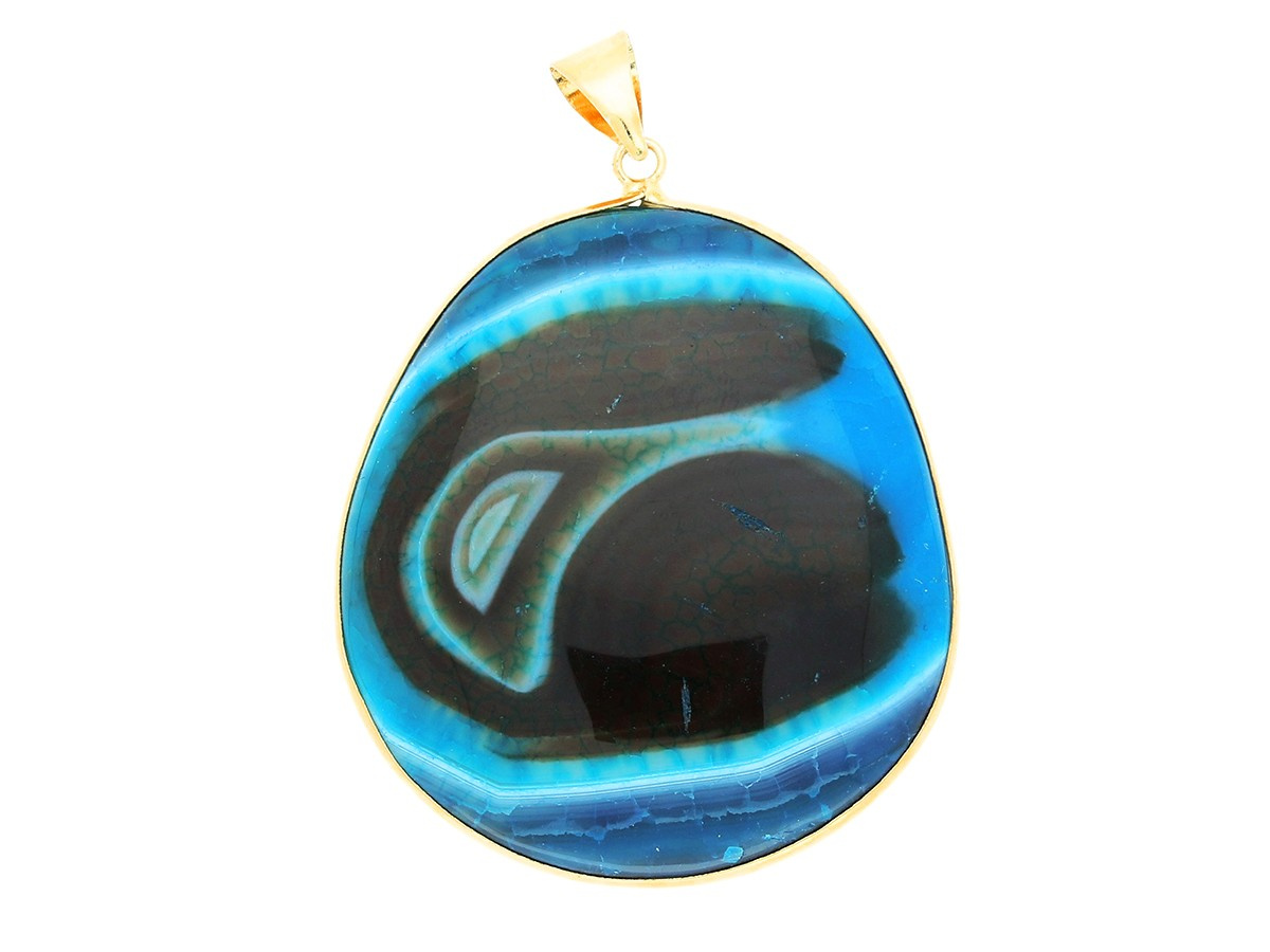 Agat / zawieszka / koło nieregularne / 52x44x11mm / niebiesko-czarny / 1szt