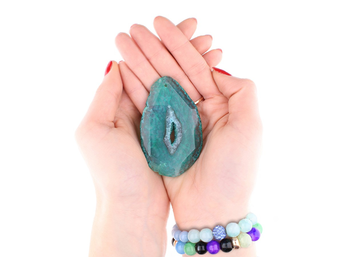 Agat / zawieszka / owal nieregularny / 73x45x6mm / zielony / 1szt