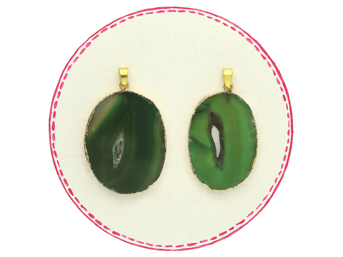 Agat / zawieszka w okuciu / plaster nieregularny / 45x30x5mm / zielony, złoty / 1szt