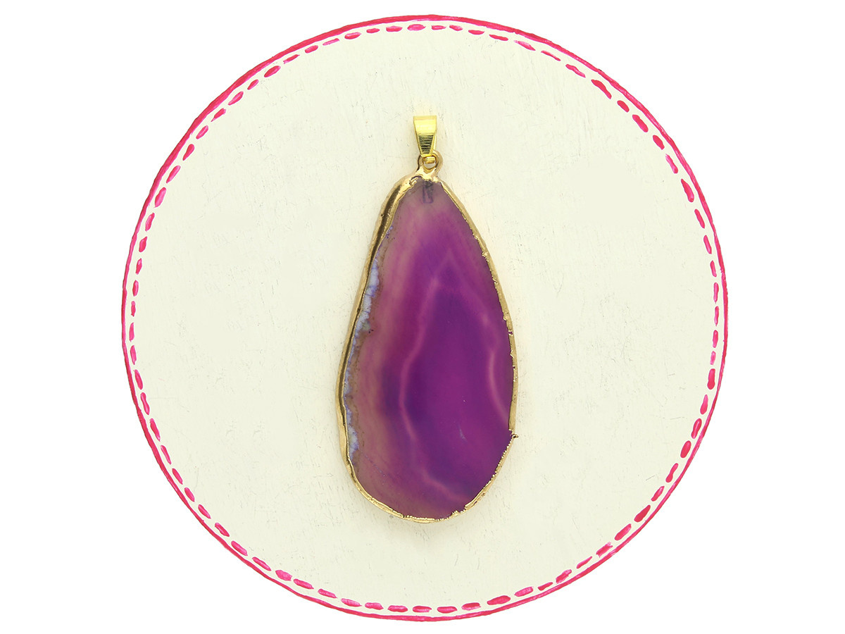 Agat / zawieszka w okuciu / plaster nieregularny / 61x30x4mm / fioletowy / 1szt