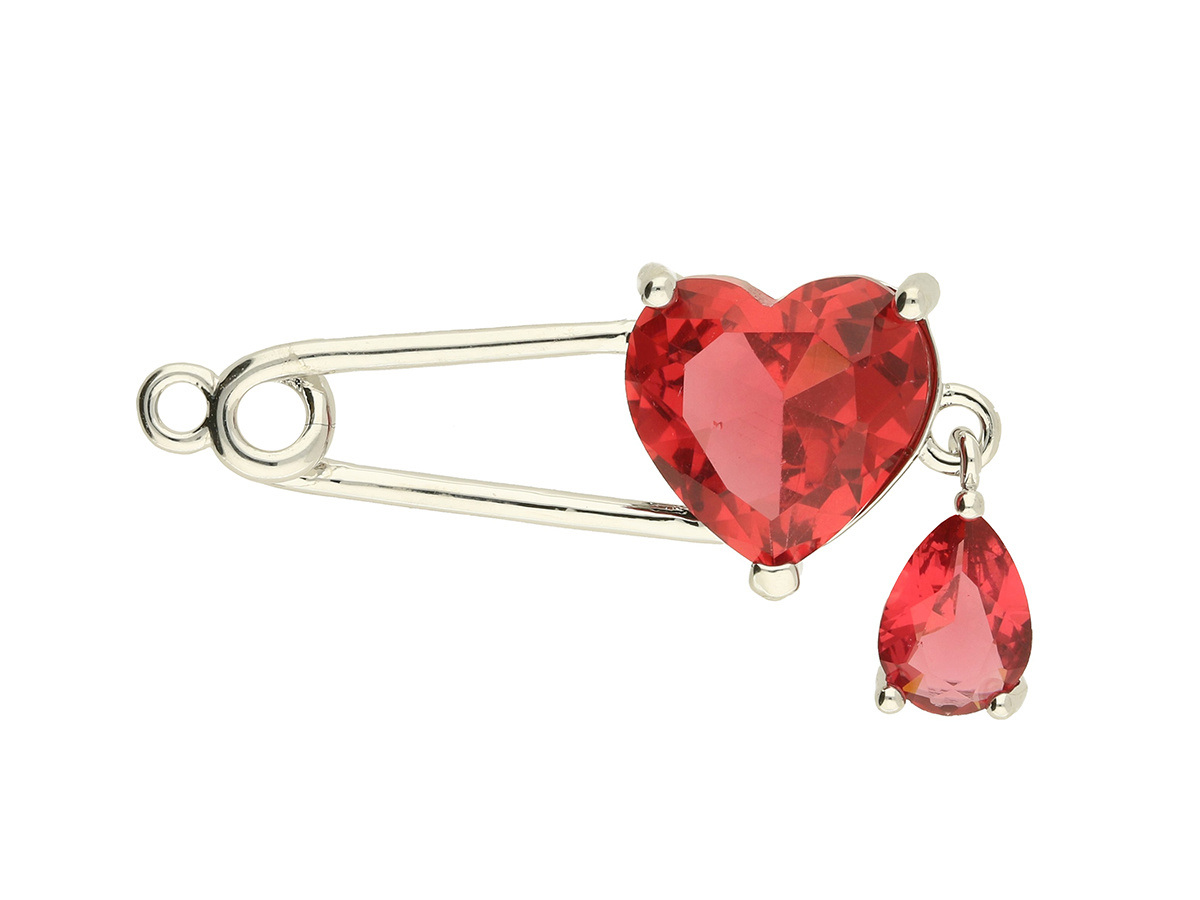 Opinie o Agrafka z sercem / zawieszka / 26x11mm / miedź, kryształ / srebrny, czerwony / 1szt