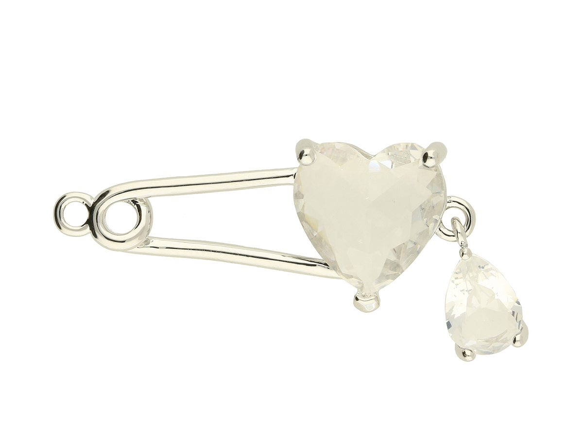 Opinie o Agrafka z sercem / zawieszka / 26x11mm / miedź, kryształ / srebrny, przezroczysty / 1szt