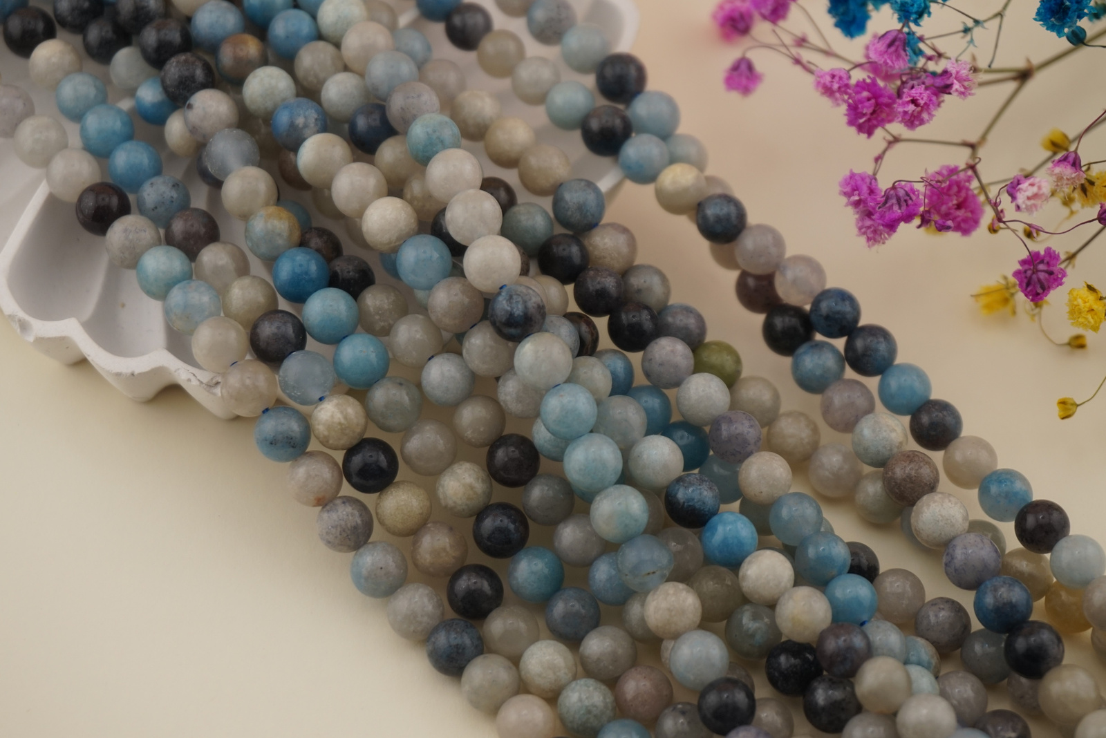 Amazonit Mix to naturalny kamień w przyjemnej, stonowanej palecie barw. Łączy odcienie błękitu, mięty, szarości, kremu oraz delikatnych, naturalnych beży. Gładkie kulki na sznurze prezentują się harmonijnie i elegancko, a lekko zróżnicowane kolory sprawiają, że każdy projekt nabiera wyjątkowego charakteru.