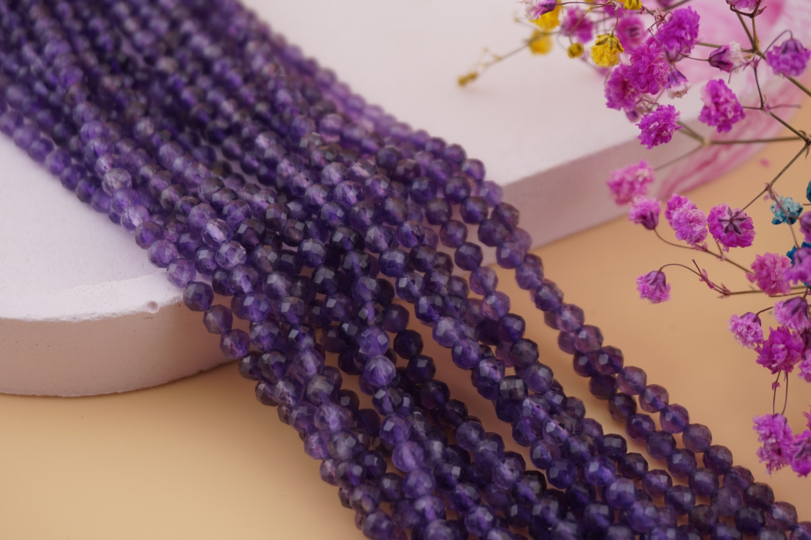 Ametyst / kula fasetowana / 4mm / sznur / 100szt