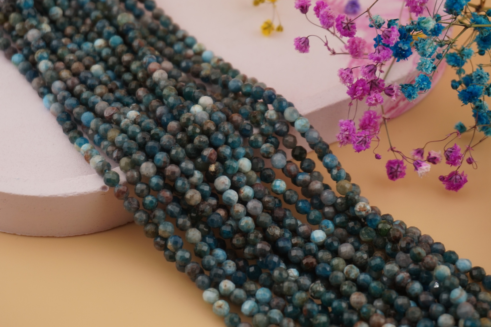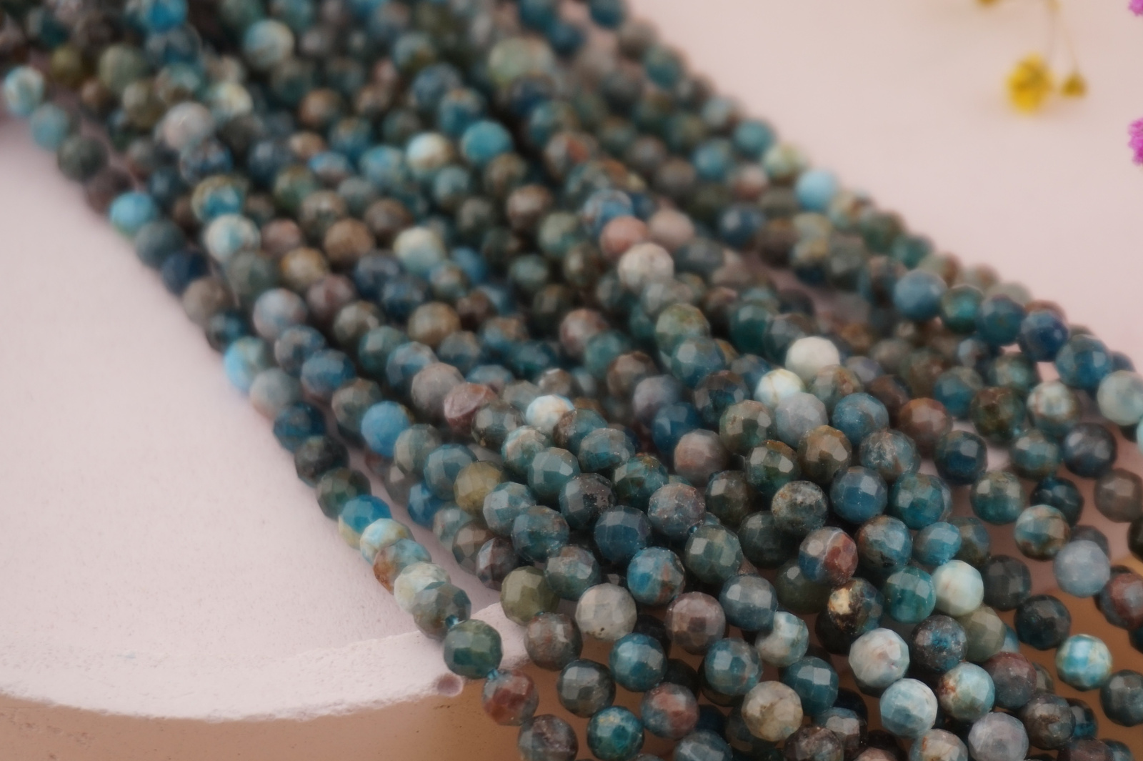 Apatyt / kula fasetowana / 4mm / sznur / około 84szt