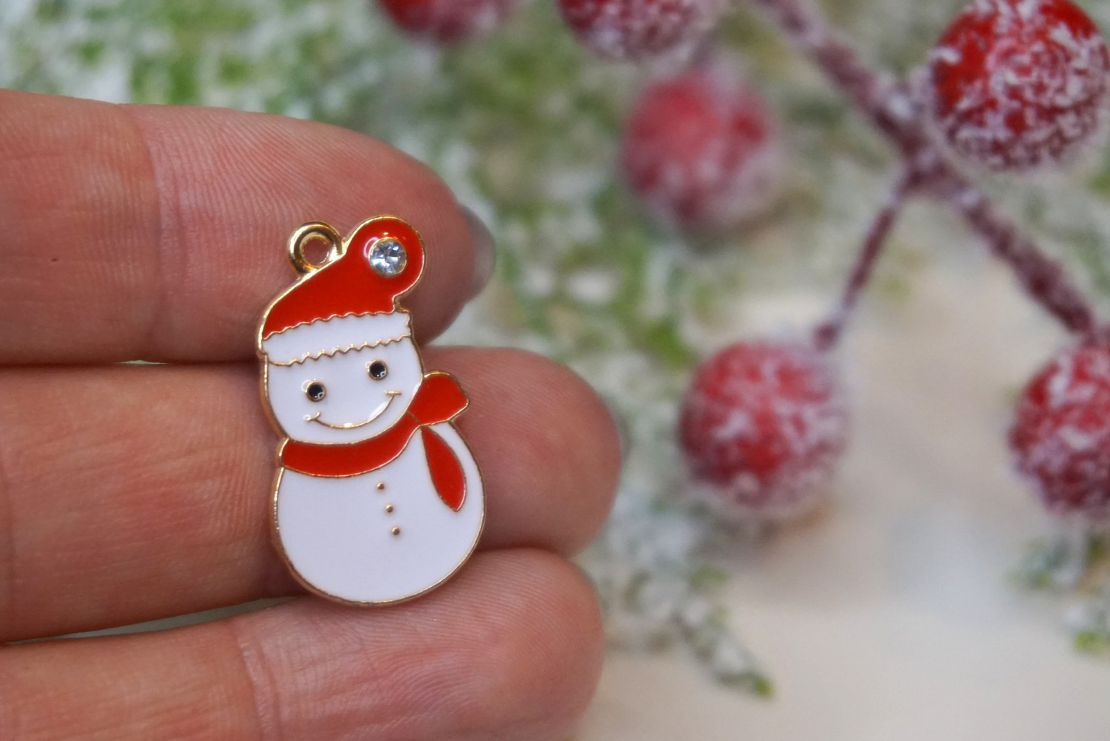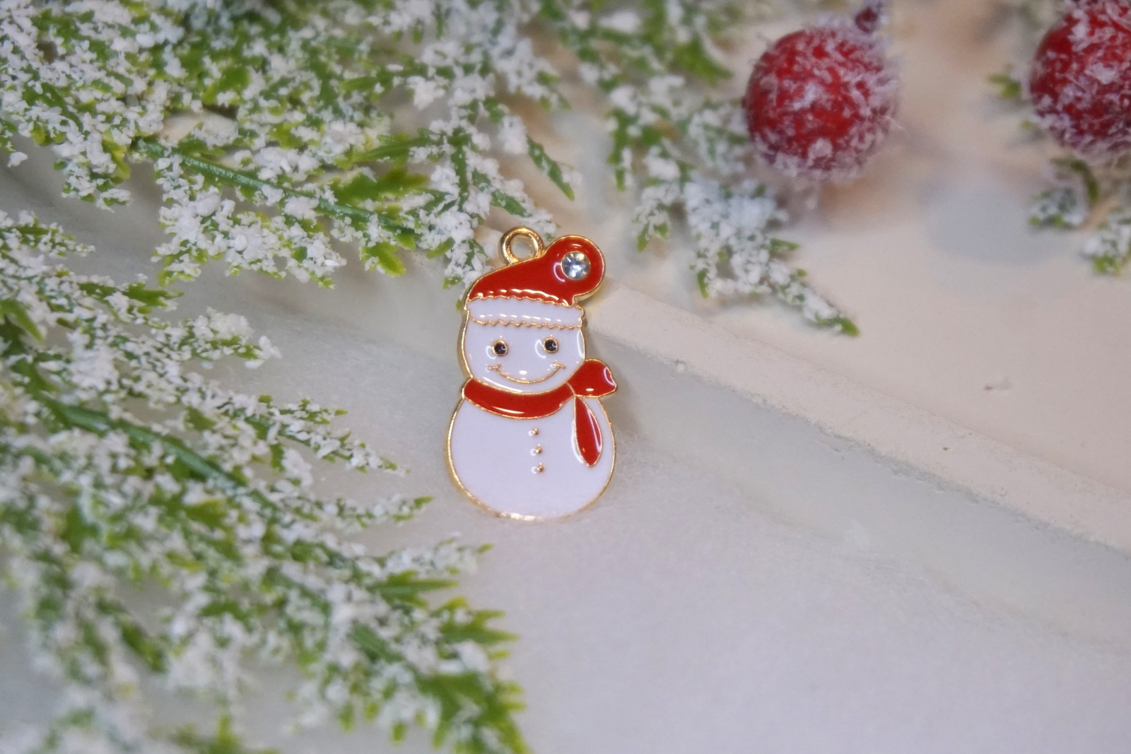 Opinie o Bałwan z cyrkonią / zawieszka emaliowana / 25x13mm / metal / złoty / 1szt
