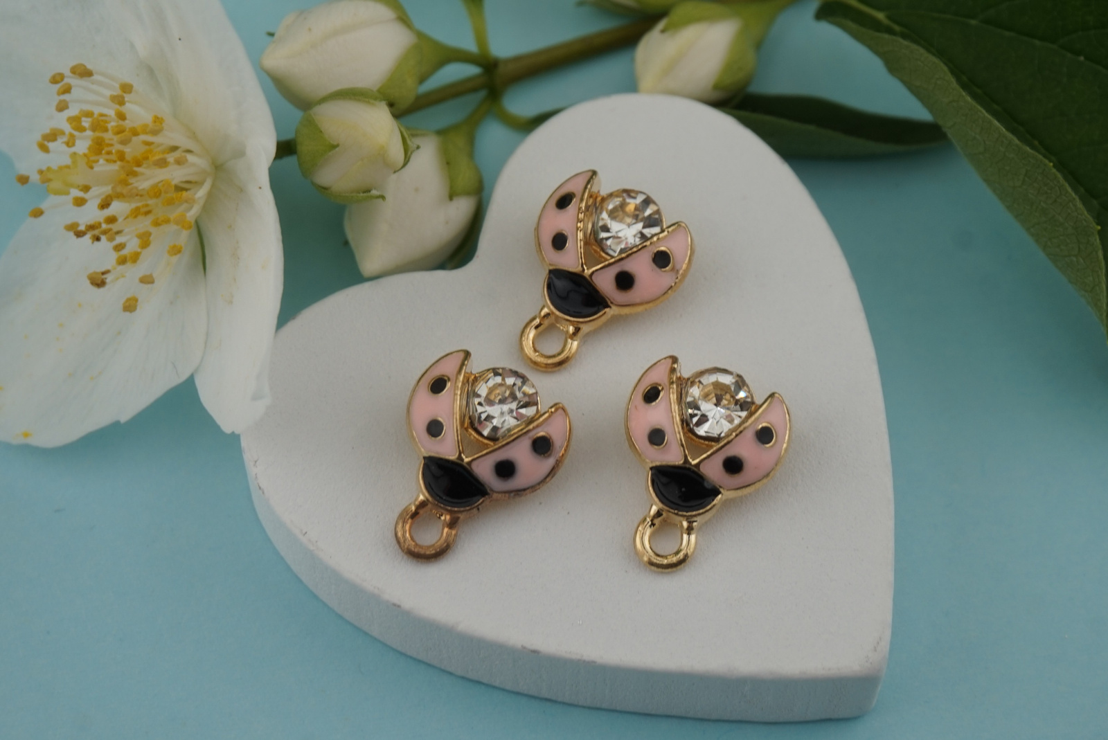 Biedronka różowa / zawieszka / 11,5x15mm / metal / złoty / 1szt