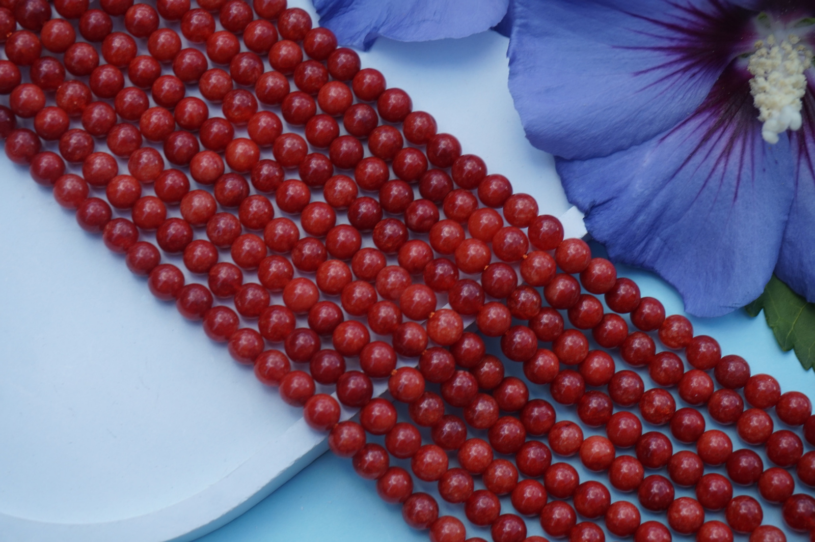 Chalcedon barwiony Xinjiang / kula / 6mm / rudo-czerwony / sznur / 60szt