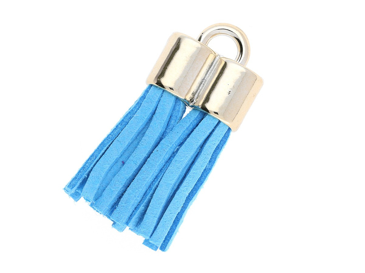 Chwost podwójny z rzemienia zamszowego / z końcówką / 40mm / KC Gold, błękitny / uchwyt 5x3mm / 1szt