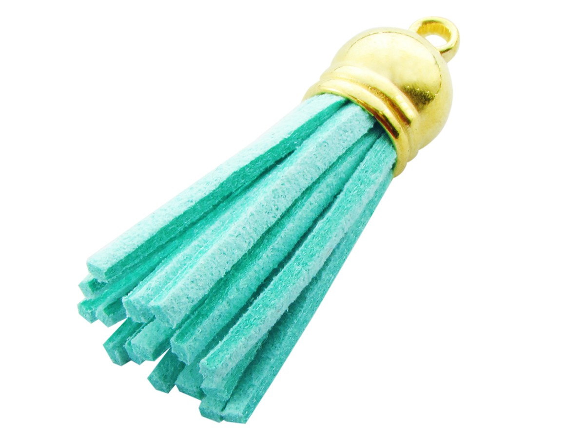 Chwost z rzemienia zamszowego / z końcówką / 40mm / kolor złoty, turkusowy / uchwyt 2mm / 2szt