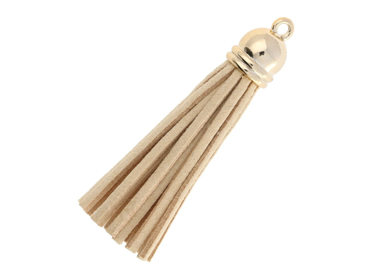 Chwost z rzemienia zamszowego / z końcówką / 56mm / KC Gold, kremowo-beżowy / uchwyt 2mm / 1szt