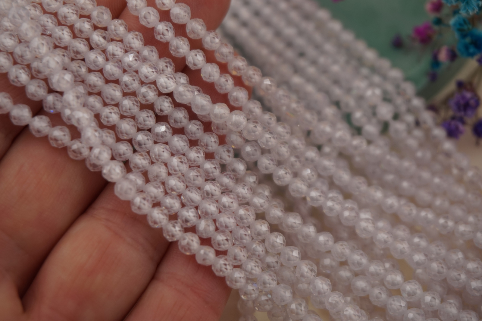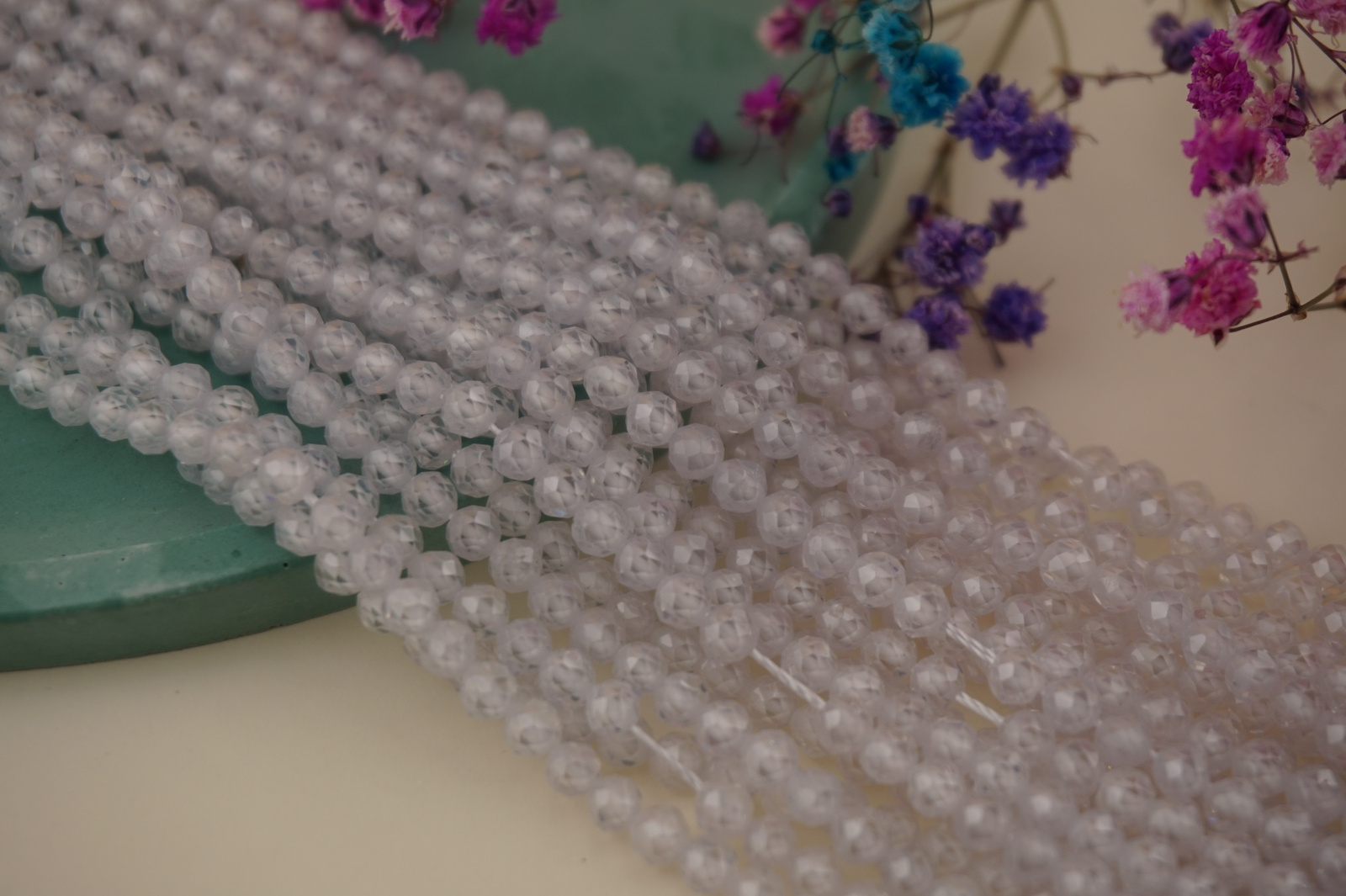 Sznur fasetowanych kulek z cyrkonii idealnie nadaje się do naszyjników, bransoletek, kolczyków oraz biżuterii ozdobnej i wieczorowej. Doskonale komponuje się ze stalą chirurgiczną, srebrem, złotem oraz innymi elementami metalowymi.