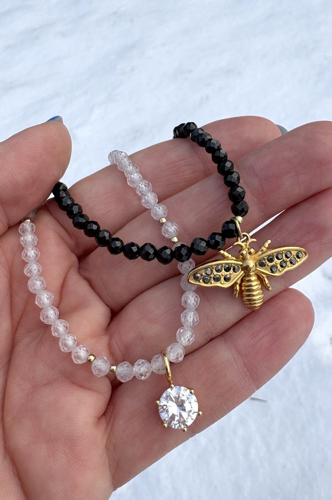Cyrkonia to wysokiej jakości materiał syntetyczny ceniony w jubilerstwie za wyjątkowy połysk i bardzo dobrą przejrzystość. Dzięki precyzyjnemu szlifowi fasetowanemu pięknie odbija światło, tworząc efekt zbliżony do kamieni jubilerskich. W formie fasetowanej kuli na sznurze cyrkonia prezentuje się elegancko i nowocześnie.