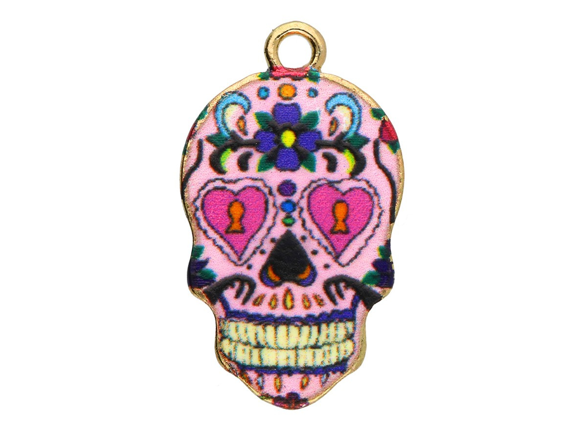 Czaszka SweetCharm™ / zawieszka charms / 23x13x2.5mm / KC Gold, multikolor / 2szt