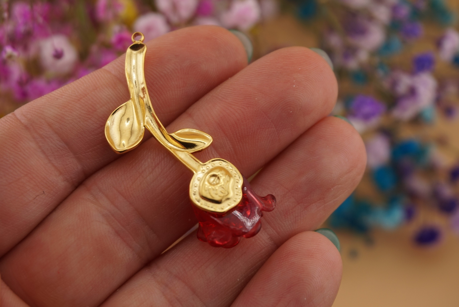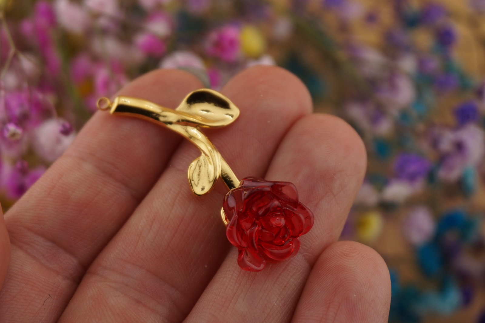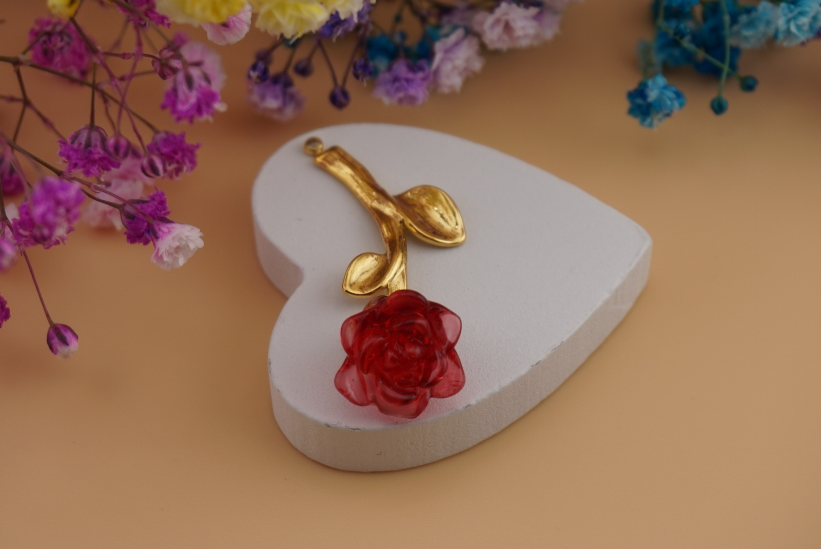 Czerwona róża / zawieszka ze stali chirurgicznej / 40x15mm / złoty / 1szt