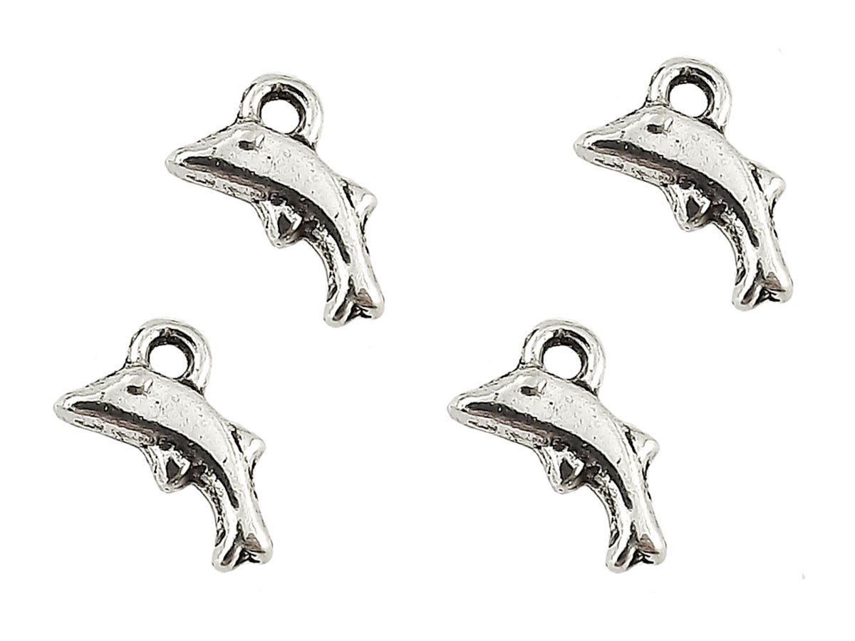 Delfin, zawieszka charms, ozdobna / kolor srebrny / 10x7mm / otwór 2mm / 14szt