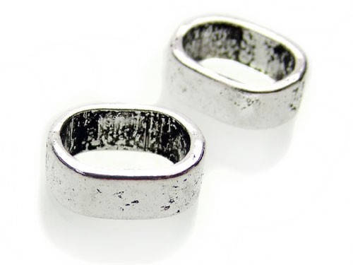 Element ozdobny, przekładka / rzemień / owal / posrebrzany / 13 x 10mm / śr. wew. 10 x 8mm / 4 szt