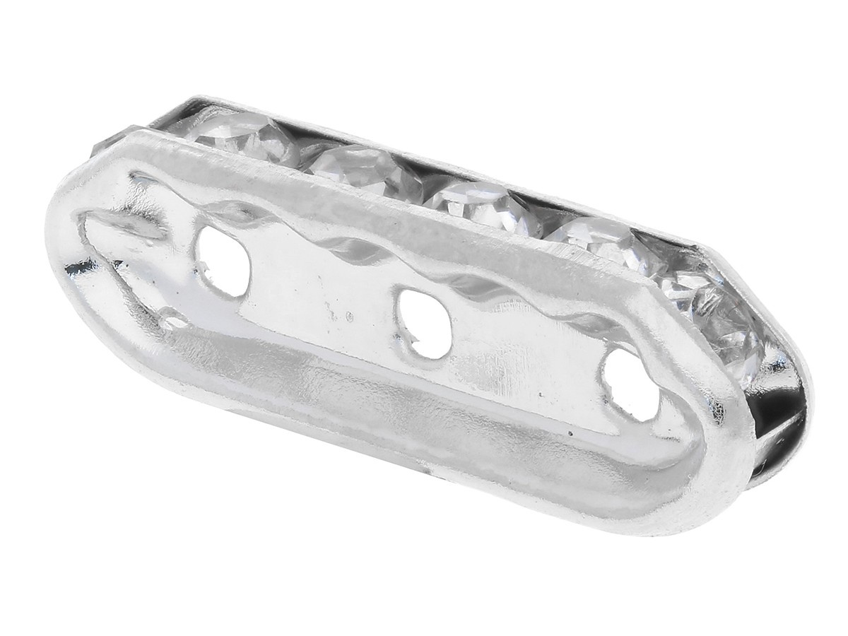 GlitteRing™ / separator / przekładka / 6 cyrkonii / 3.5x21x7mm / srebrny / 3 otwory / 10szt