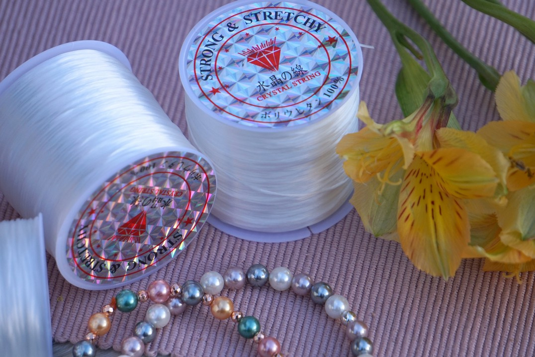 Gumka jubilerska. Na szpulce znajduje się 60m. Gumka jest jednolita i wytrzymała. Dobrze się rozciąga.