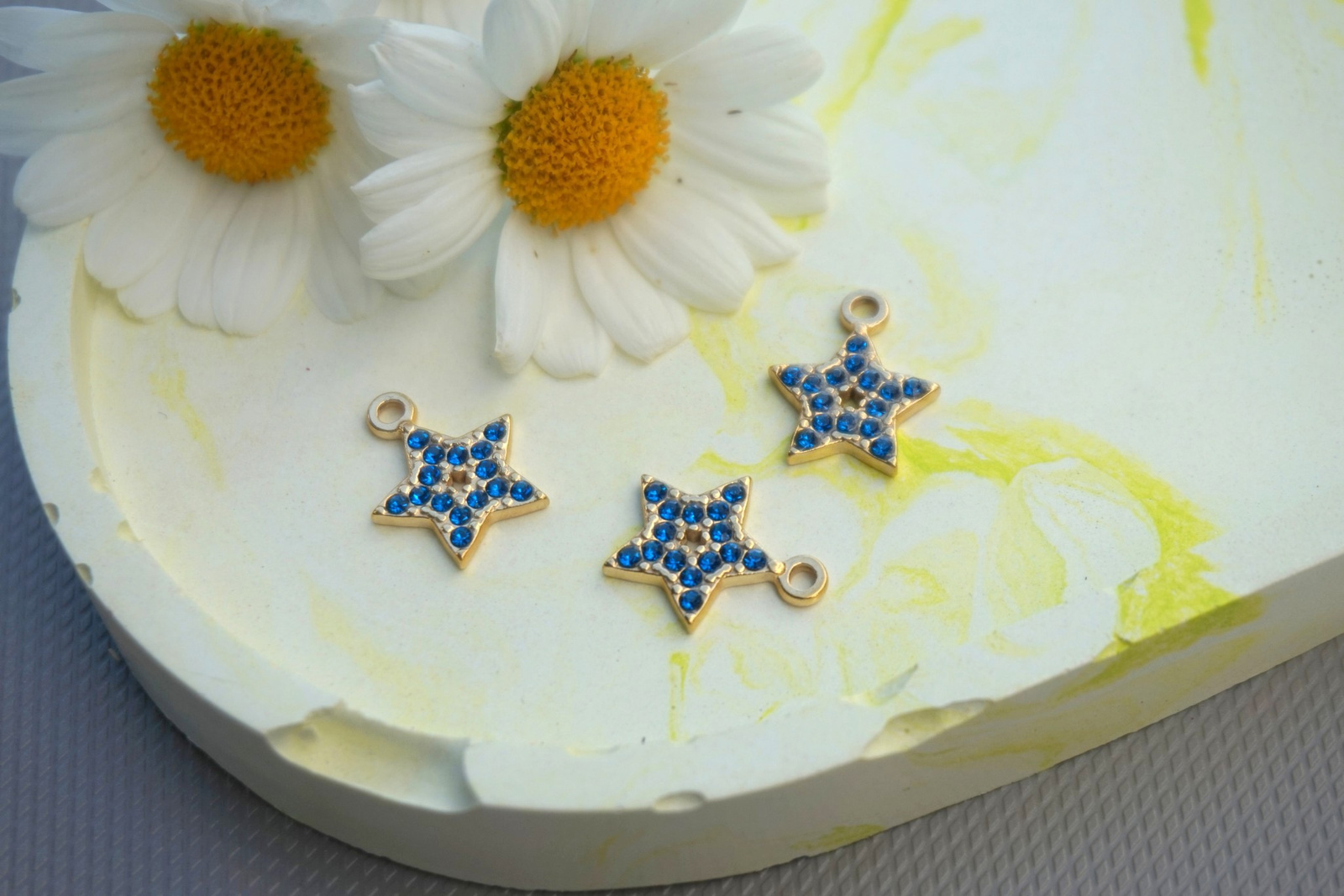 Gwiazdka z cyrkoniami / zawieszka / stal chirurgiczna / 16x13mm / złoty-niebieski / 1szt