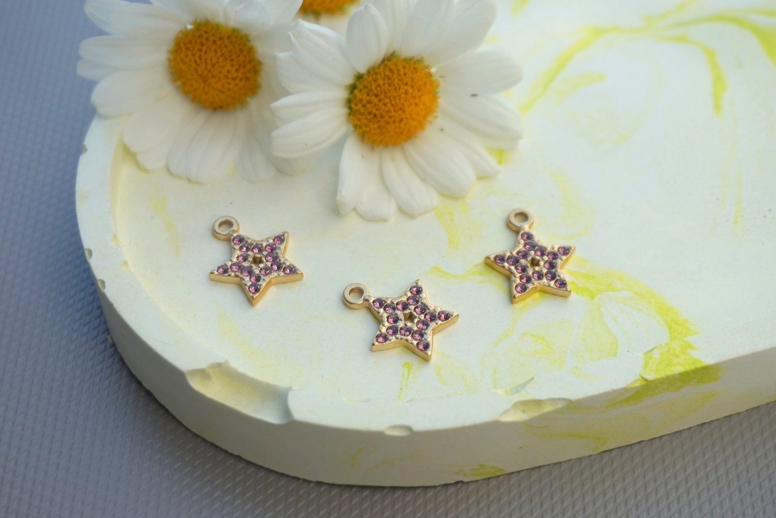 Gwiazdka z cyrkoniami / zawieszka / stal chirurgiczna / 16x13mm / złoty-różowy / 1szt