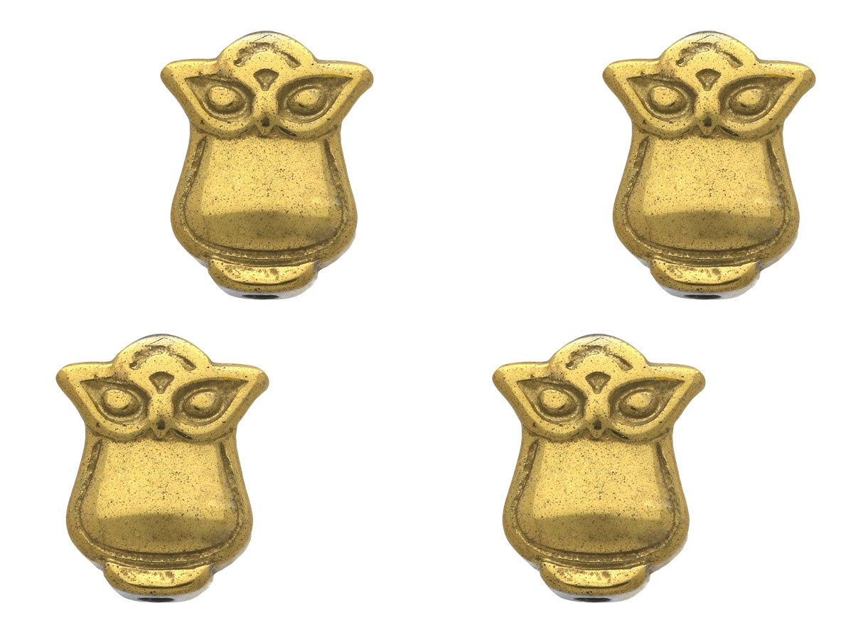 Hematyt, kamień naturalny / sowa / 10x8x2.5mm / Gold / otwór 1mm / 4szt