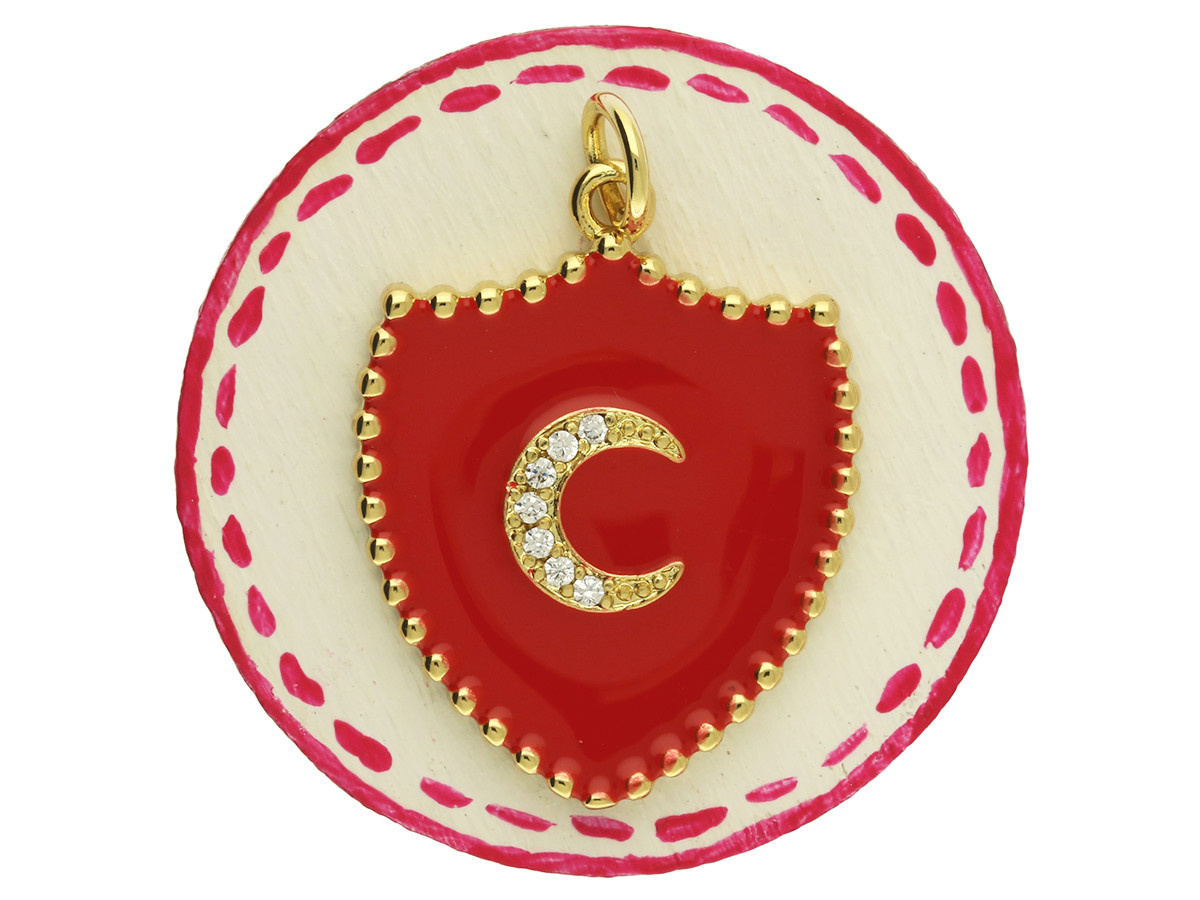 Herb księżyc / zawieszka / mosiądz pozłacany, cyrkonie / 23x18mm / złoty, czerwony / 1 szt