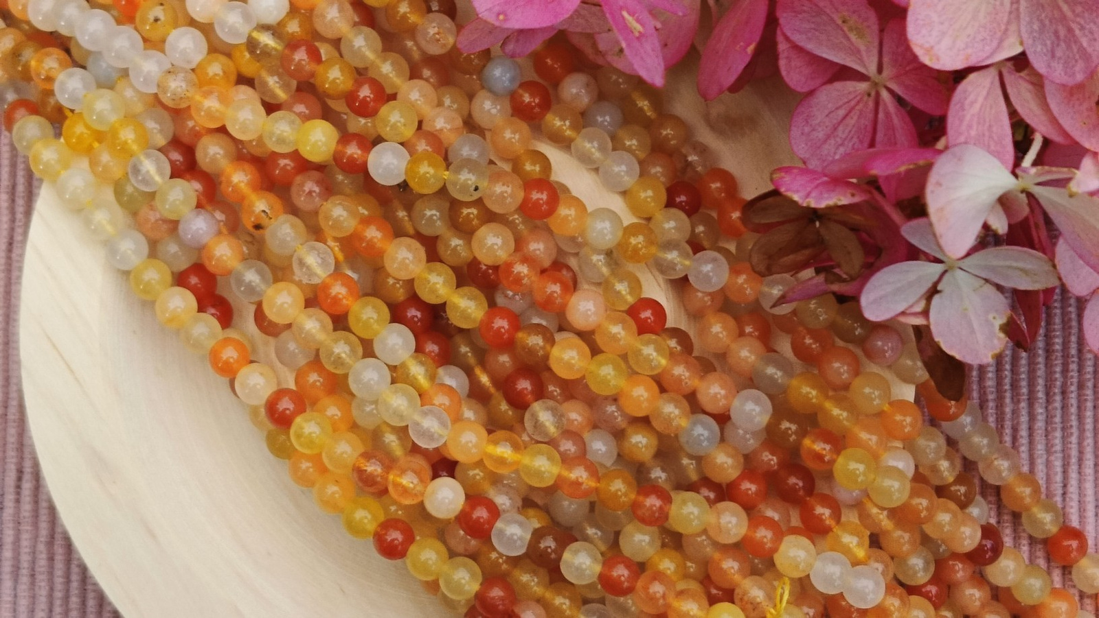 Jadeit złoty / kula / 4mm / sznur / około 90szt