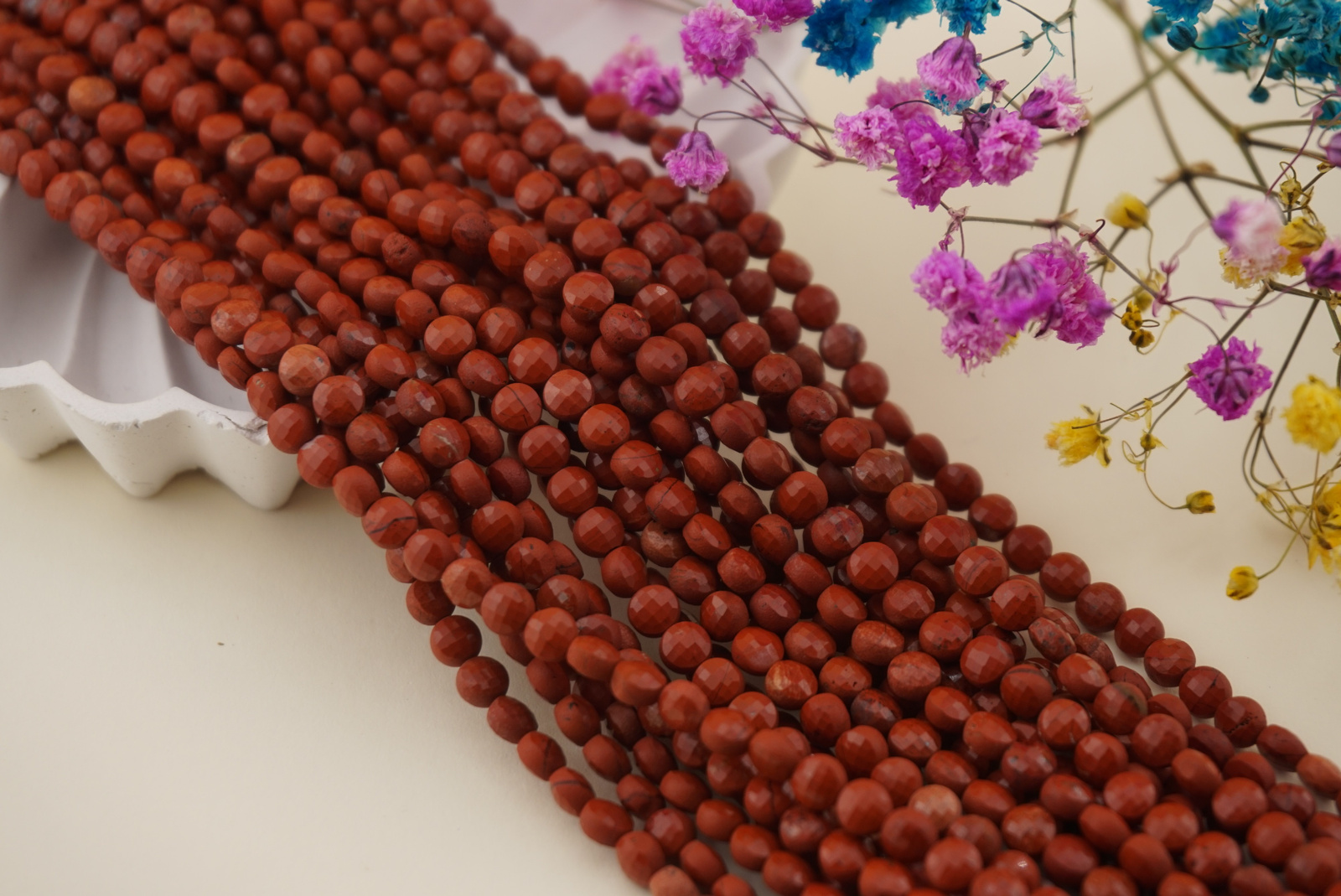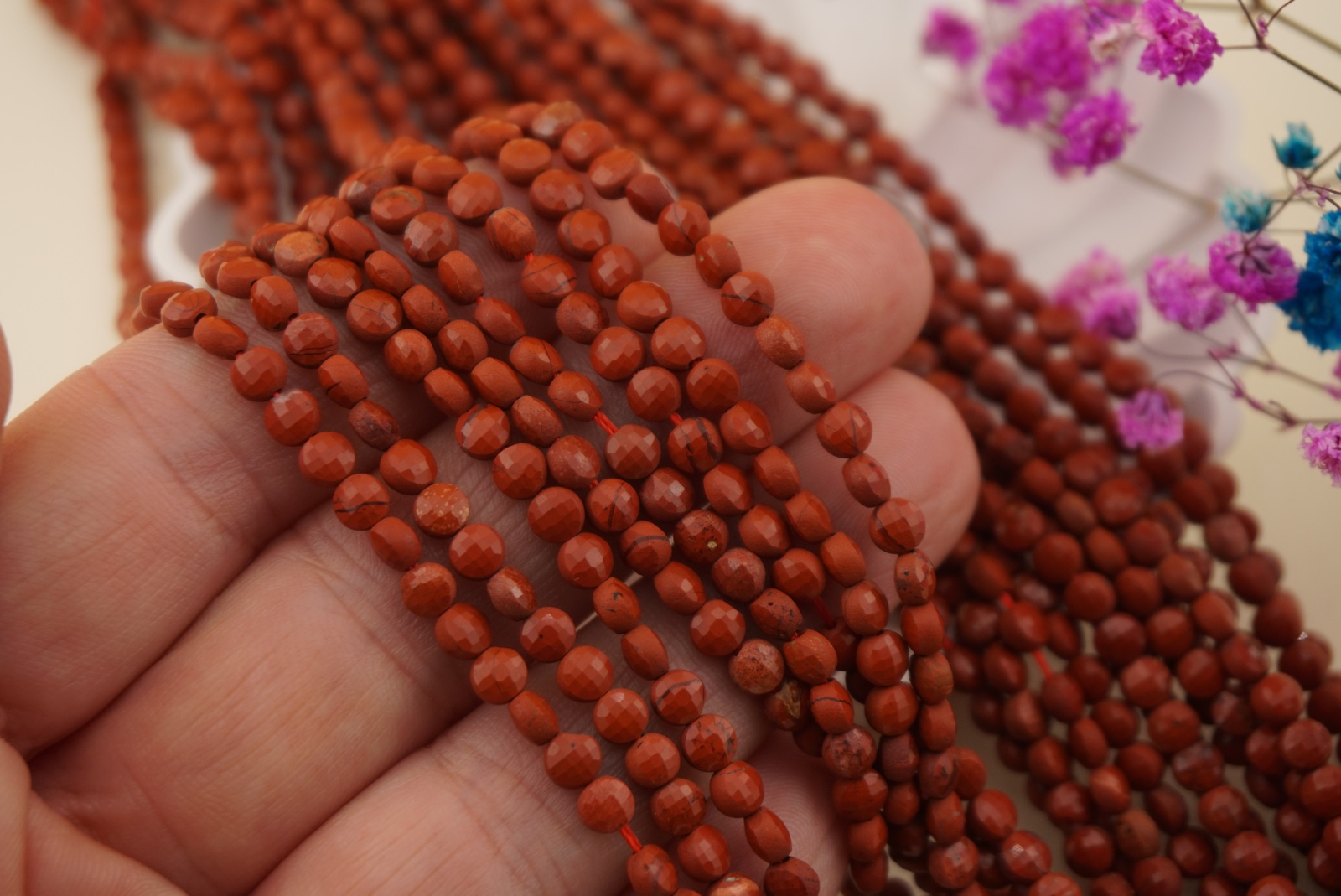Jaspis czerwony / pastylka fasetowana / 4mm / sznur / około 90szt