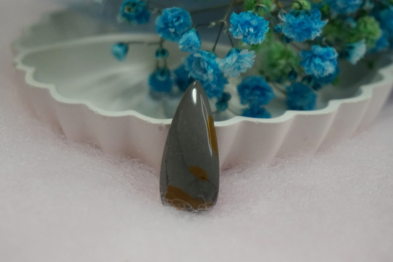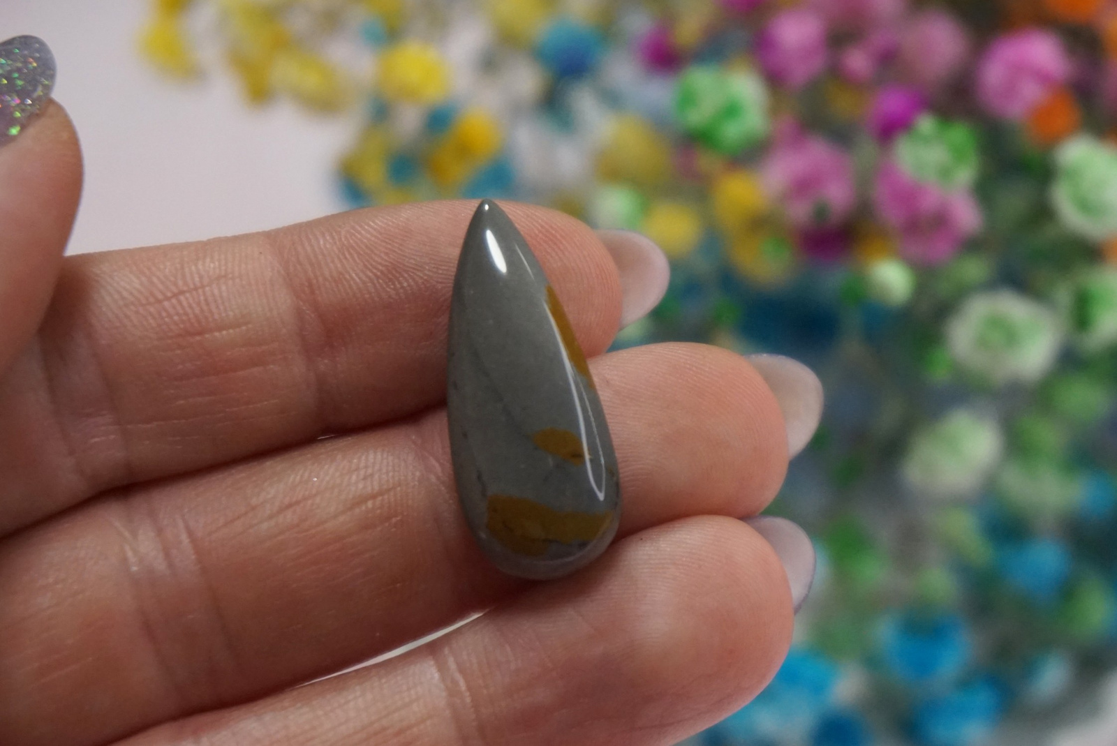 Jaspis / kaboszon / klasa AAA / 29x12x6mm / szary, brązowy / 1szt