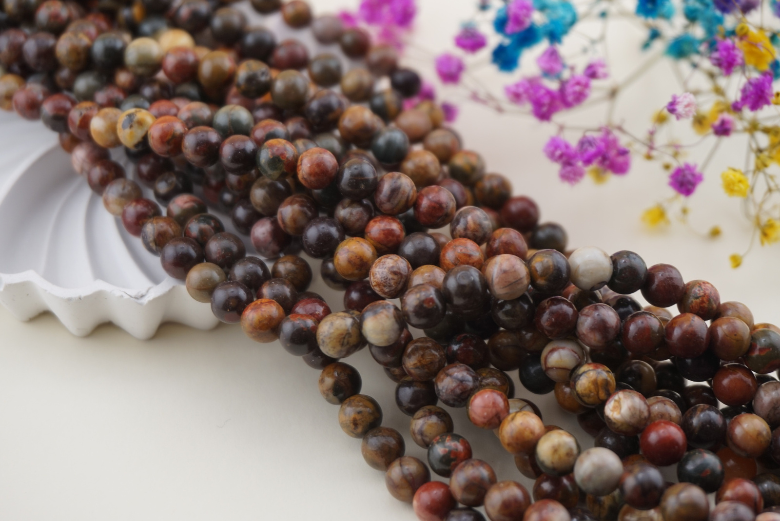 W formie kuli gładkiej na sznurze kamień prezentuje się elegancko i równomiernie, a jego unikatowy rysunek sprawia, że każda bransoletka czy naszyjnik wygląda inaczej. To idealny materiał do biżuterii handmade utrzymanej w naturalnej, ziemistej palecie barw.