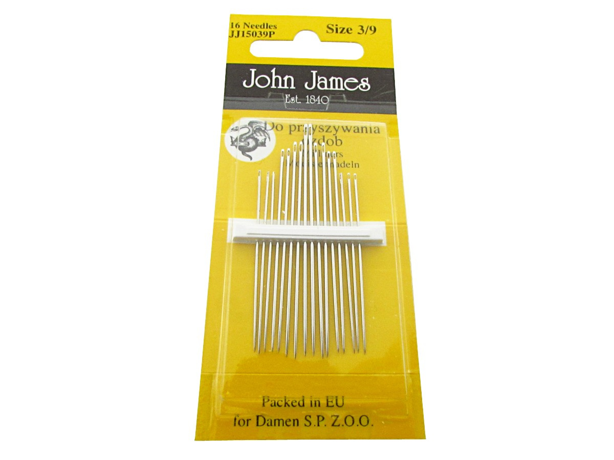 John James™ / igły do przyszywania ozdób / rozmiar 3/9 / długość 42-55mm / kolor srebrny / 16szt