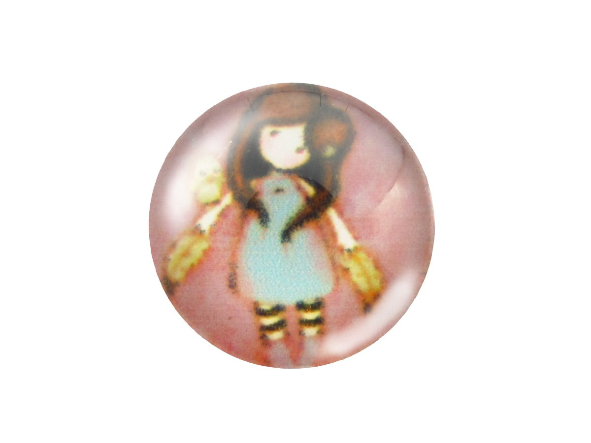 Kaboszony szklane z grafiką 14mm PT1505 / różowy / 4szt