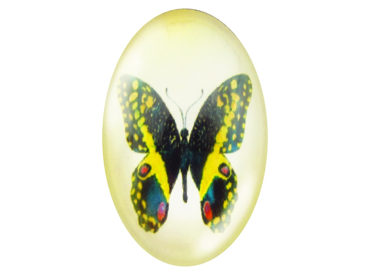 Kaboszony szklane z grafiką 18x25mm PT1527 / czarno-żółty / 2szt