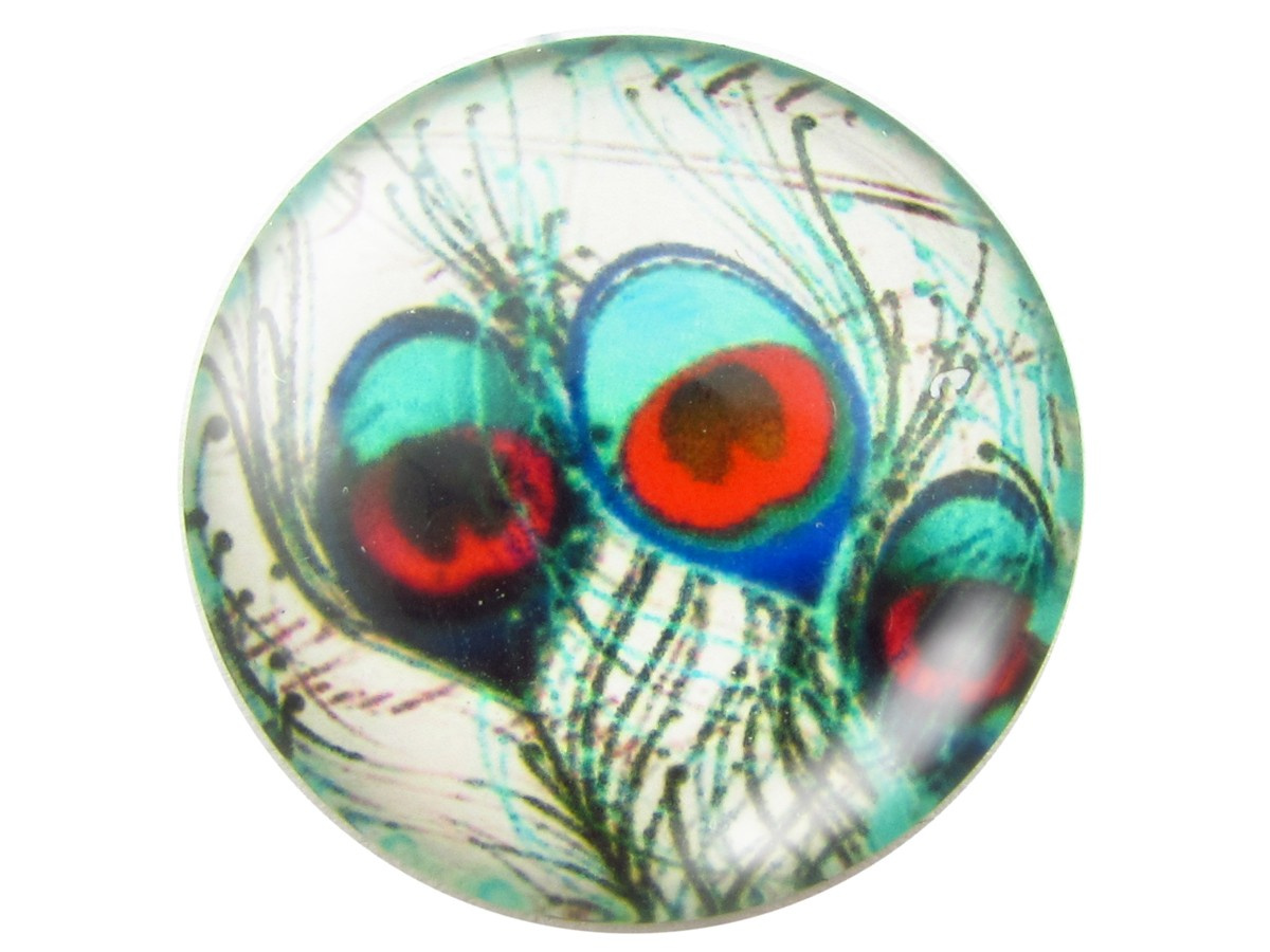 Kaboszony szklane z grafiką, 20mm PT1543 / miętowo-czerwony / 2szt