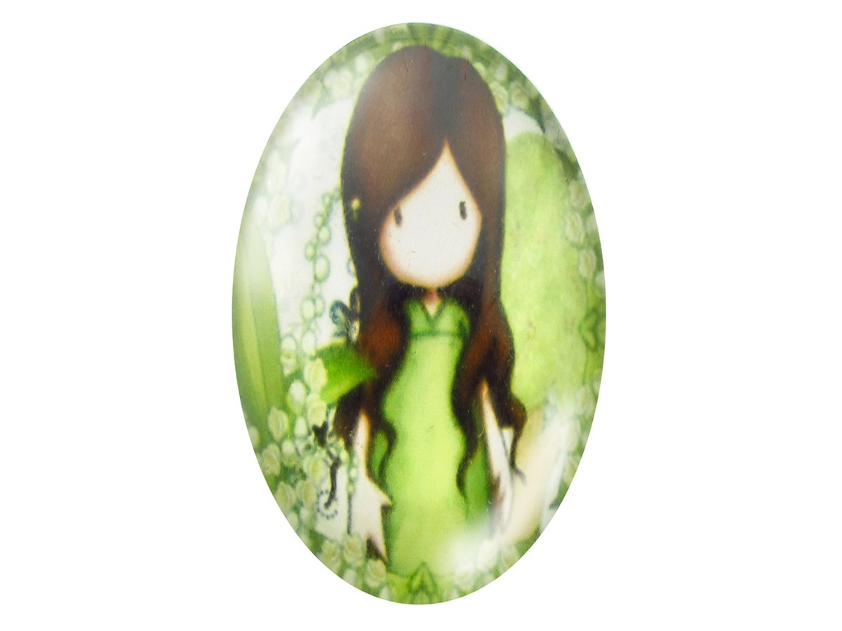 Kaboszony szklane z grafiką, owal 18x25mm PT1490 / zielony / 2szt