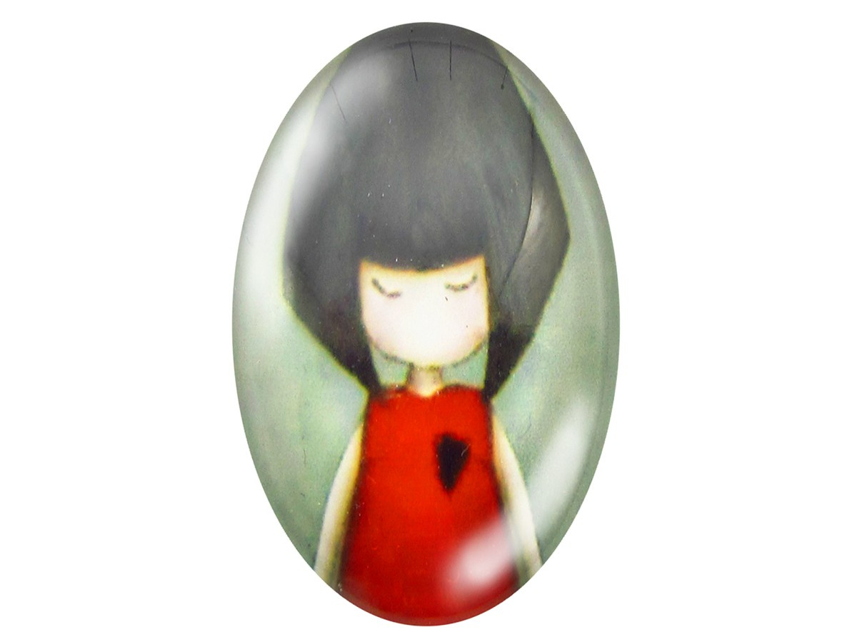 Kaboszony szklane z grafiką, owal 18x25mm PT1492 / czerwono-czarny / 2szt